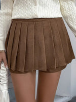 Mini Pleated High Waist Skater Skirt Color in Brown