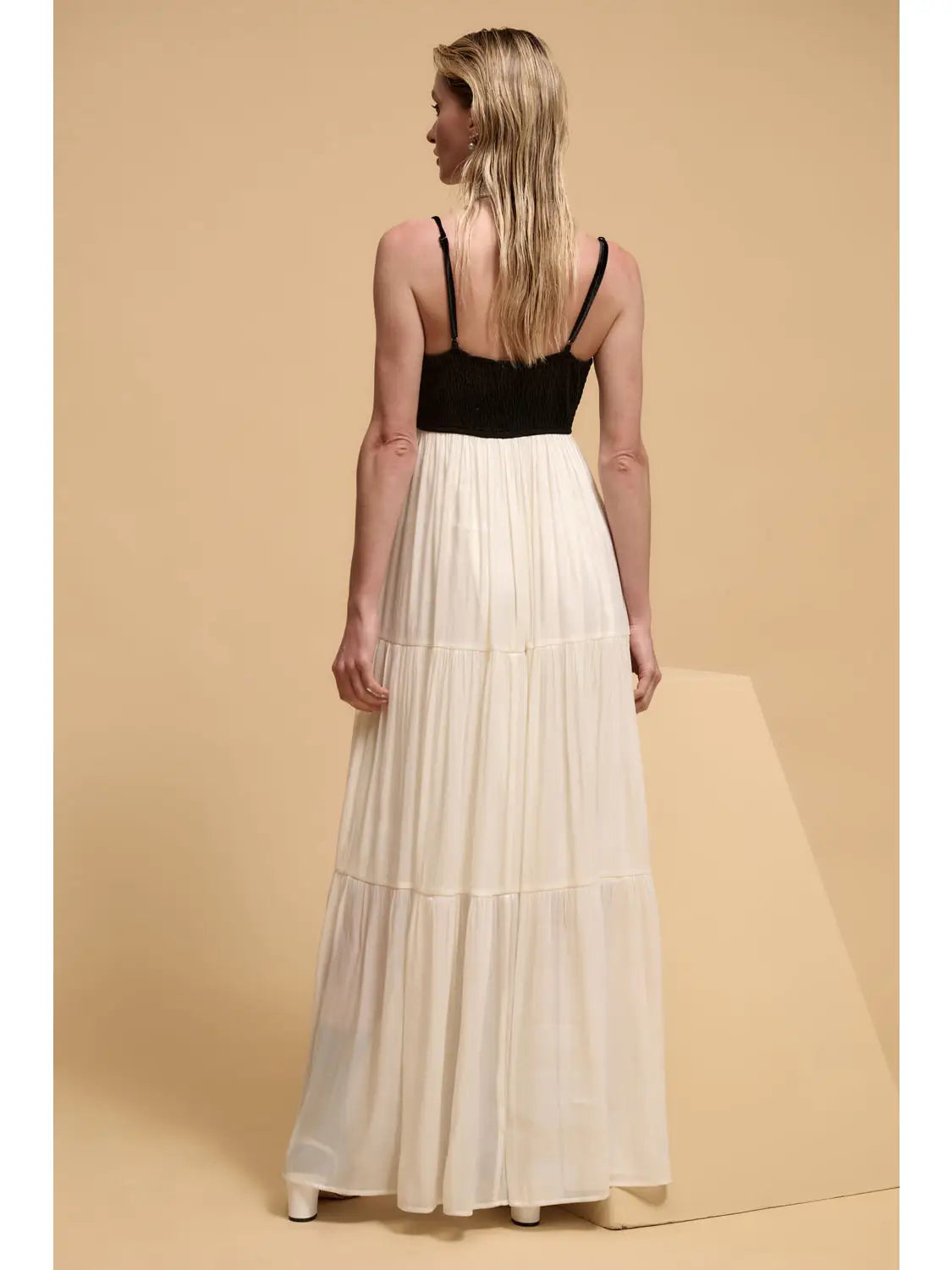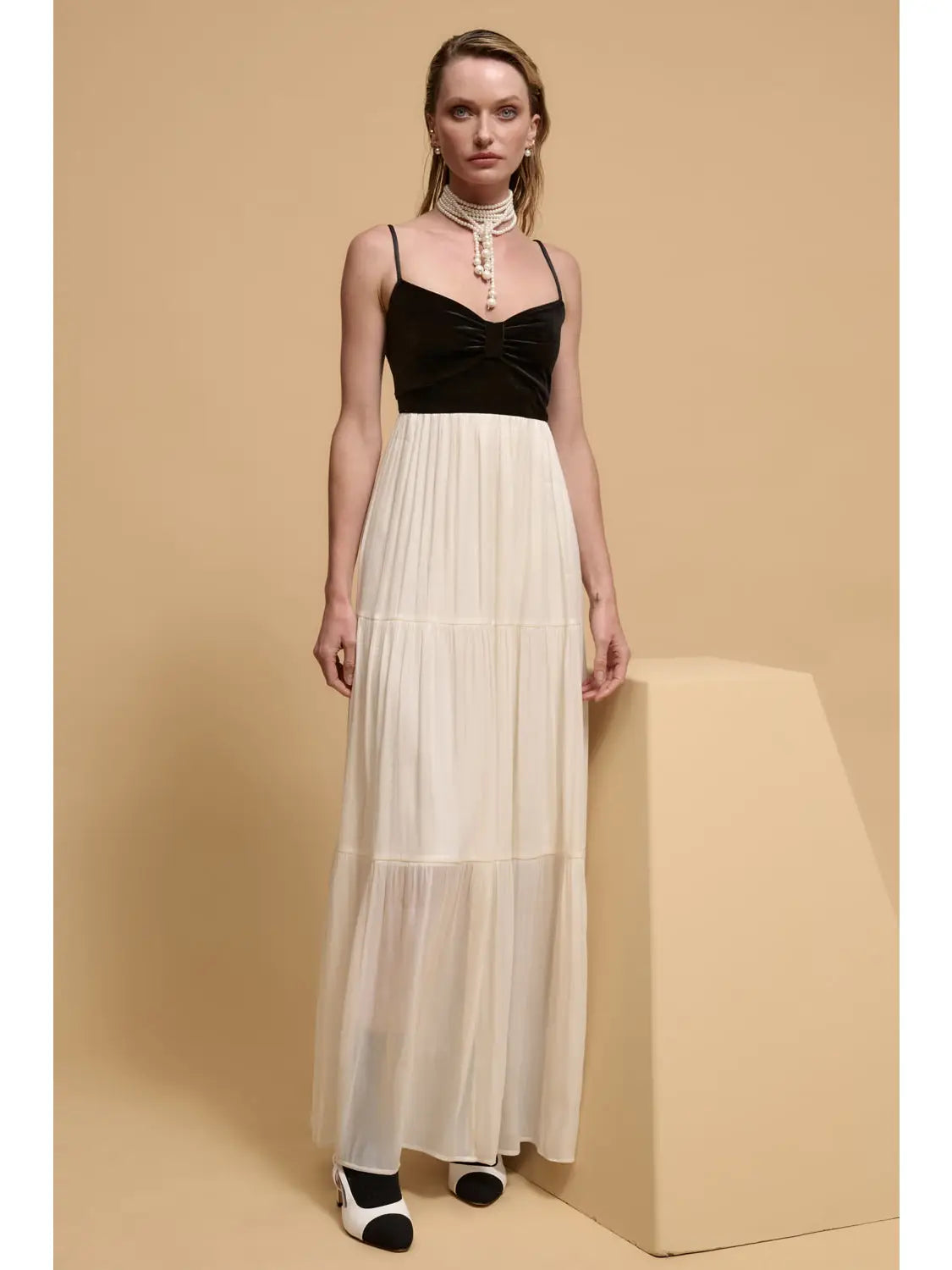 Velvet and shimmer chiffon tiered maxi dress
