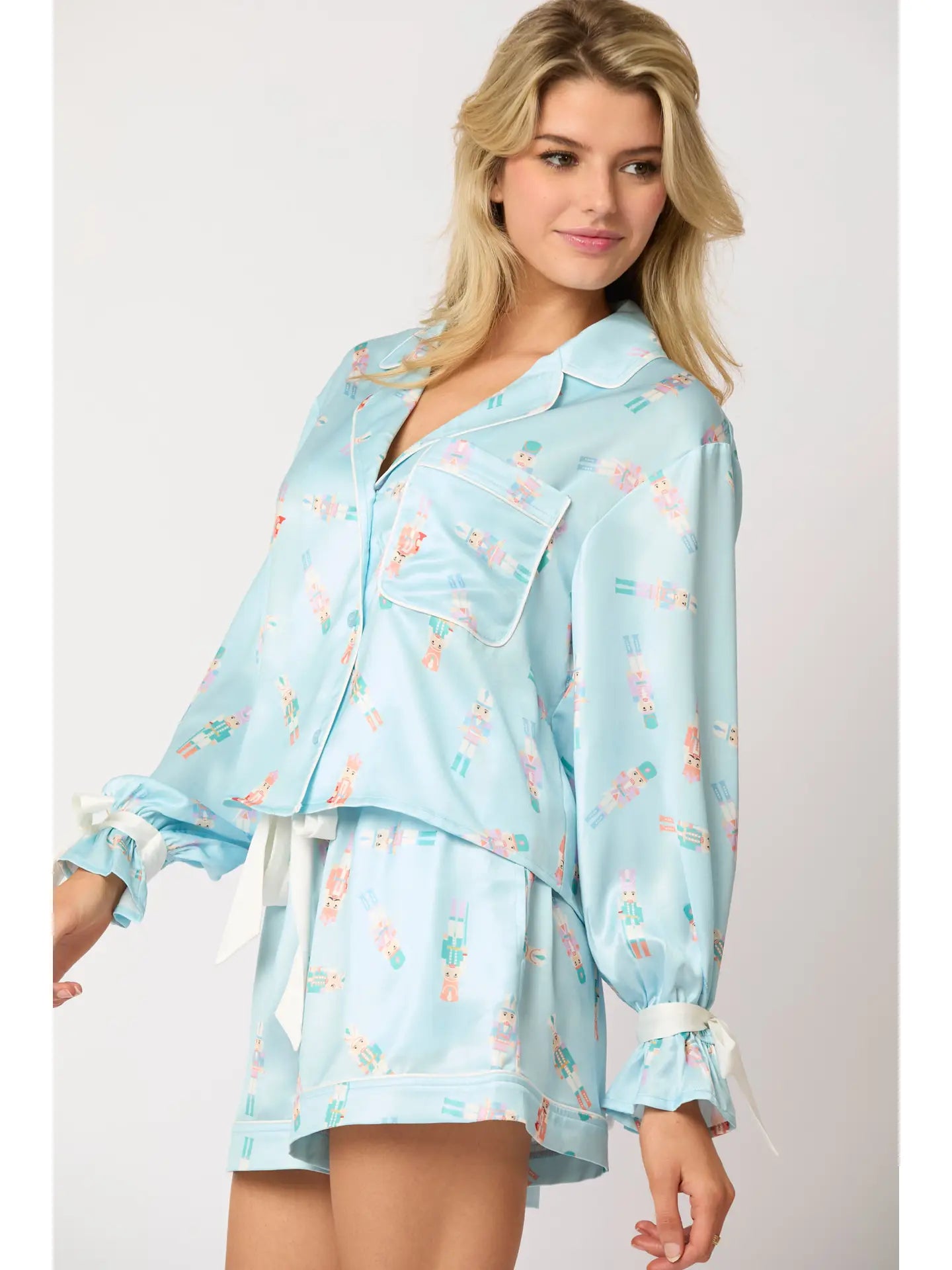 Christmas Spirits Shirt Style 2pcs Short Pajama Set Color White