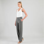 Wide Leg Slacks Elastic Waistband Color Heather Gray