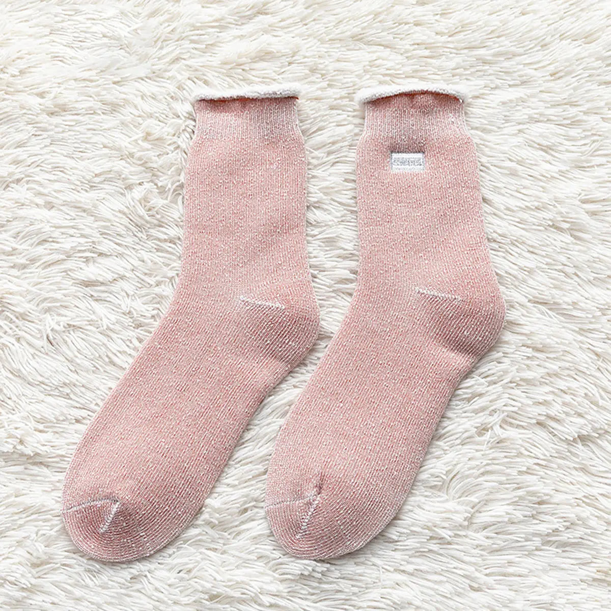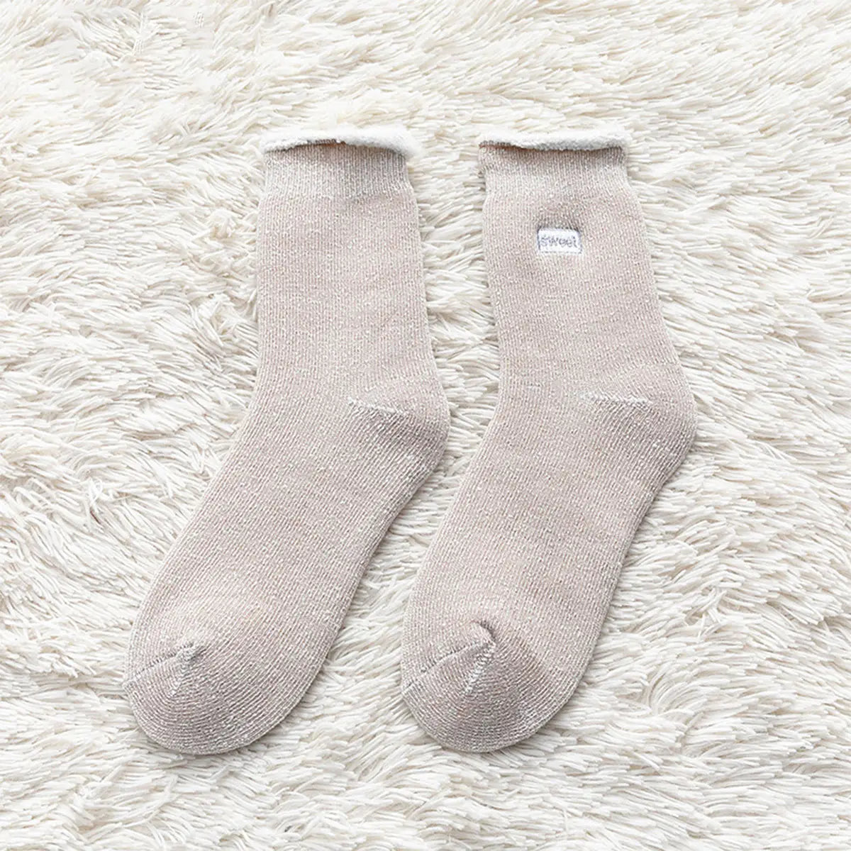 Autumn and Winter Thick Warm Socks in Khaki and Pink