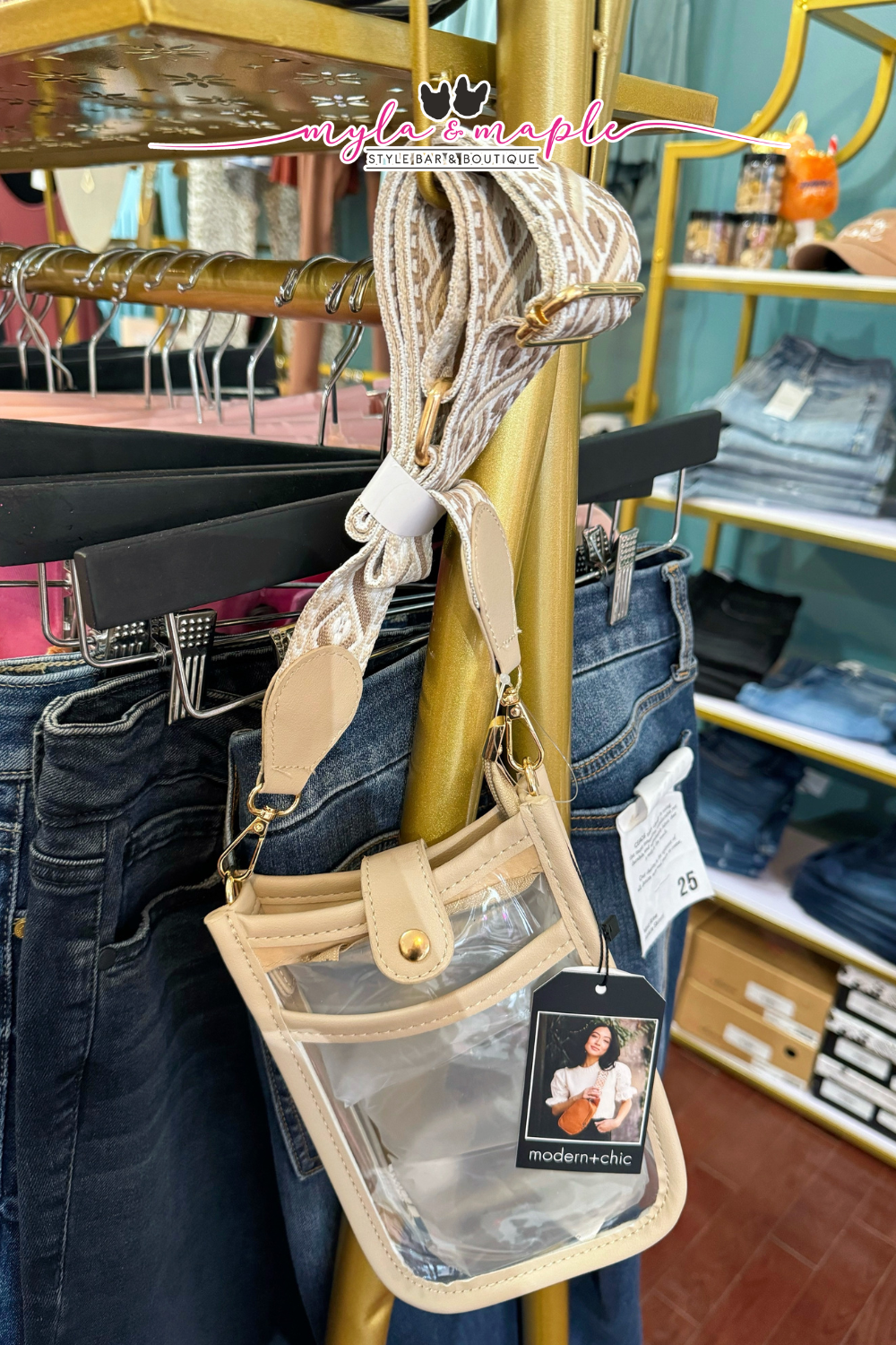 Logan Clear Crossbody Stadium Concert Bag in Black, Light Taupe and White