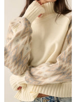 Knit geo print raglan sleeve turtleneck sweater