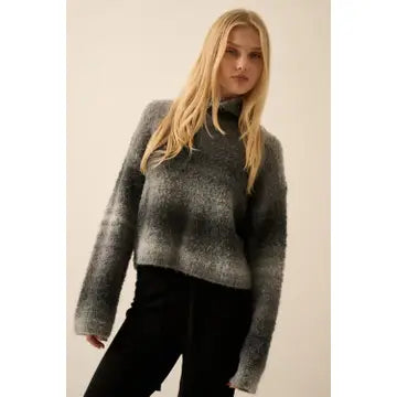 Striped Ombre Turtleneck Wide Sleeve Sweater in Grey