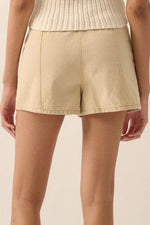 Paneled Denim Elastic Waist Pocket Shorts with Tie Detail in Color Sand
