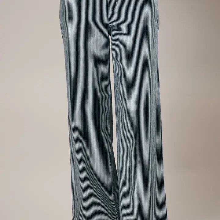 Striped Stretch Twill Pants with Two Front Pockets and Two Back Pockets Indigo White Stripe